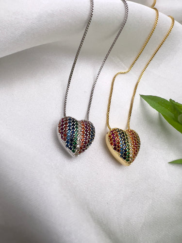 Studded solitaire colorful cz necklace