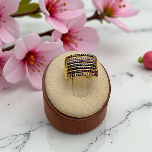 Wide ring with colored micro zirconias