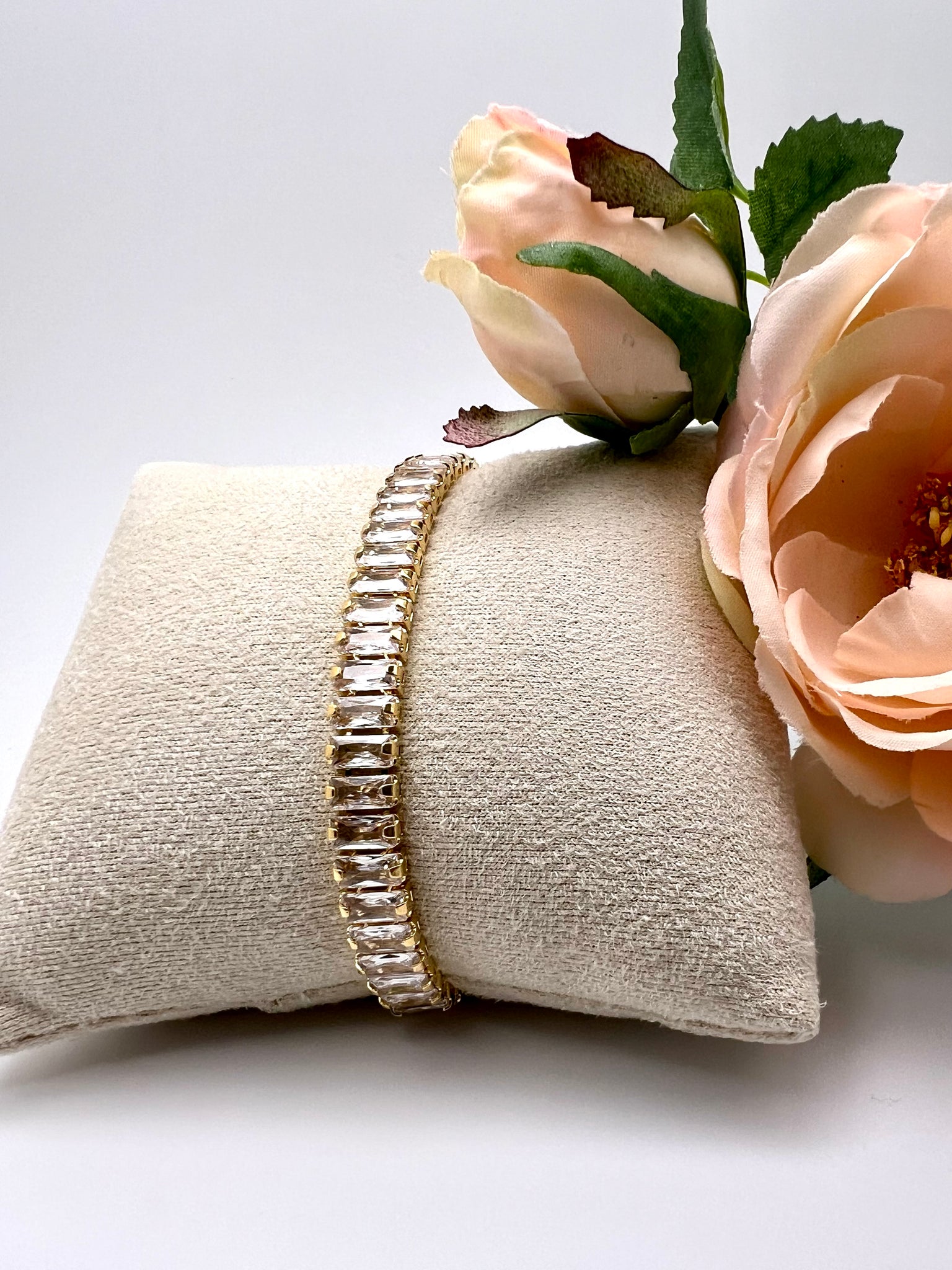 Baguette cz with extention bracelet gold and rhodium plated