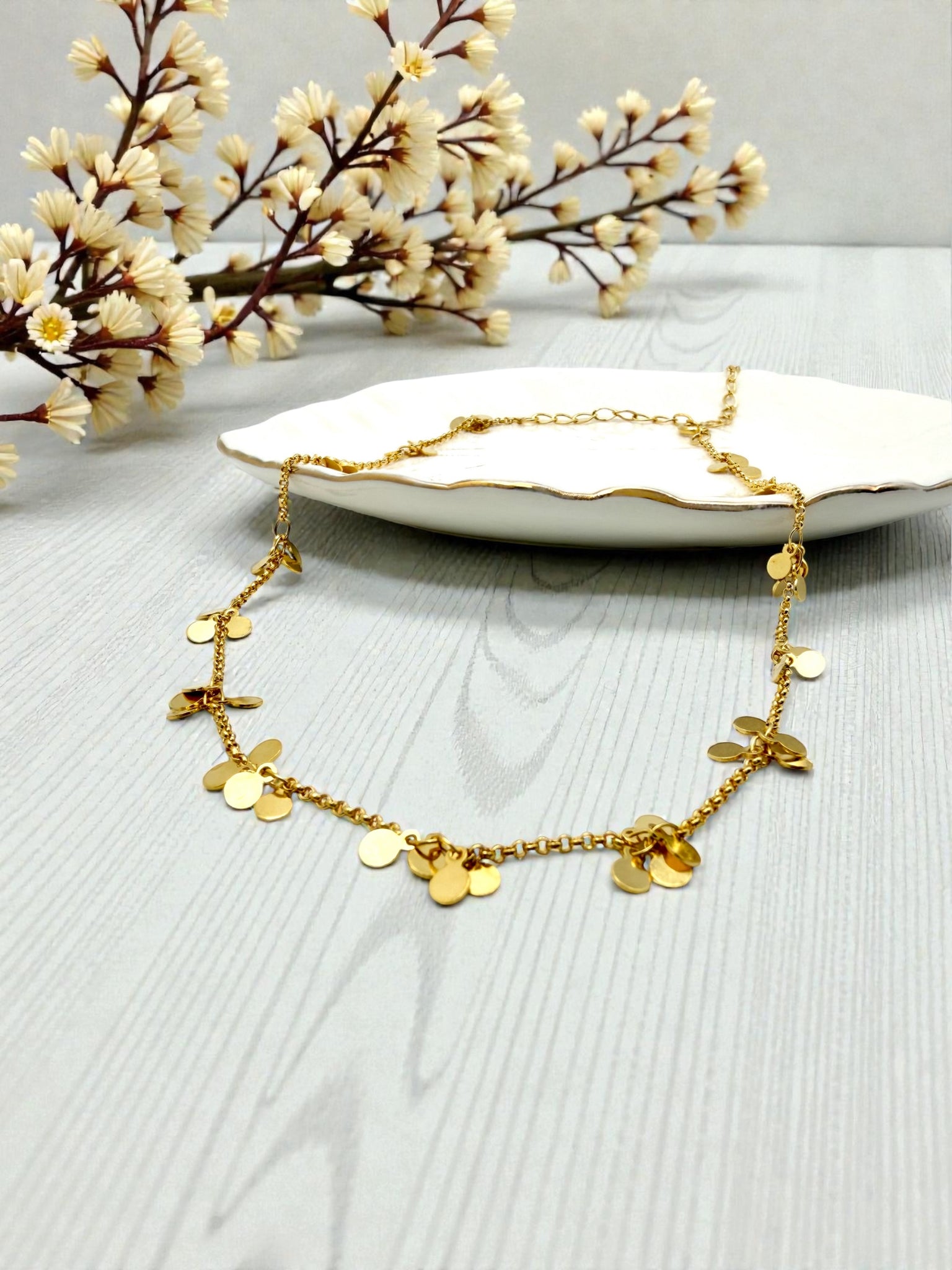 Choker necklace with small medals in a cluster