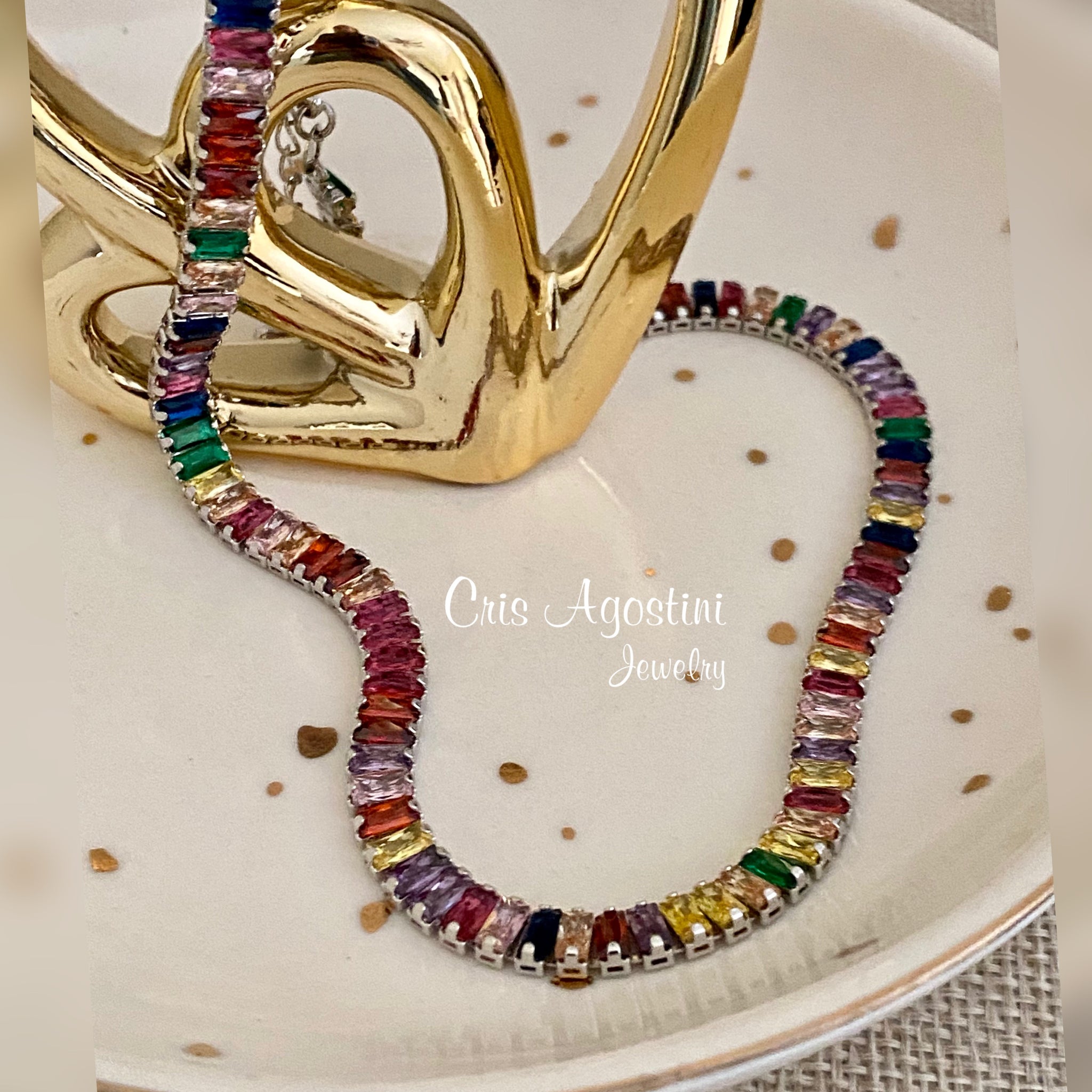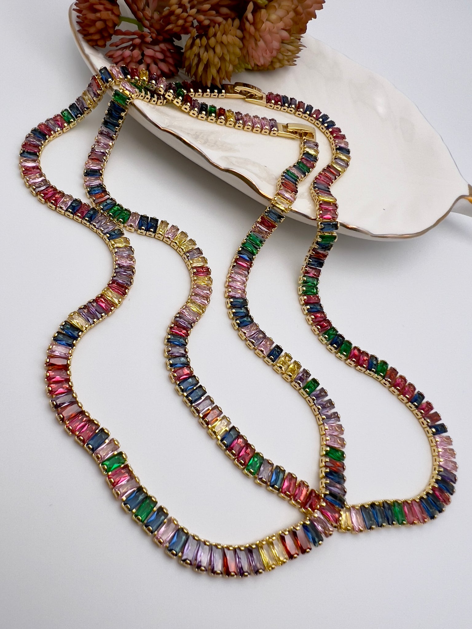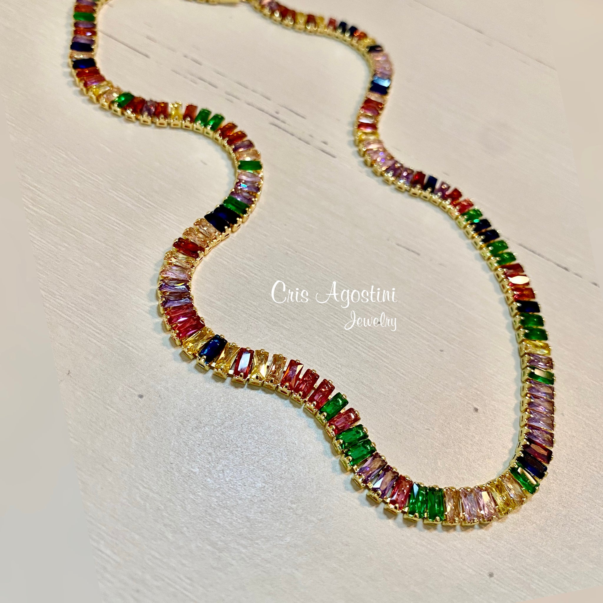 Colorful baguette zirconia necklace