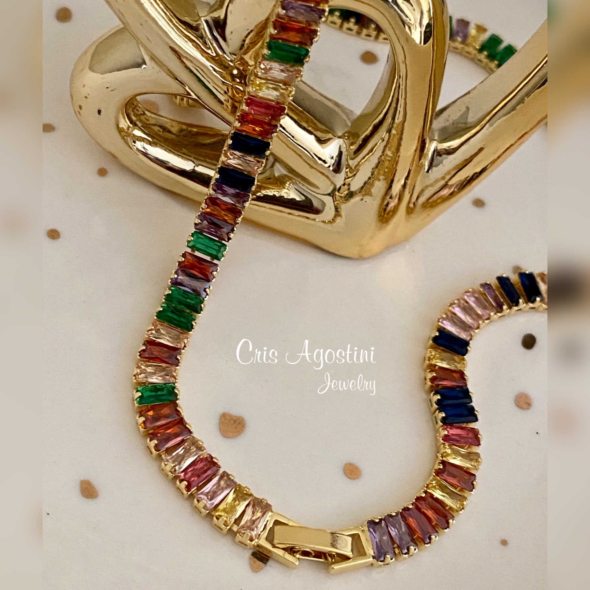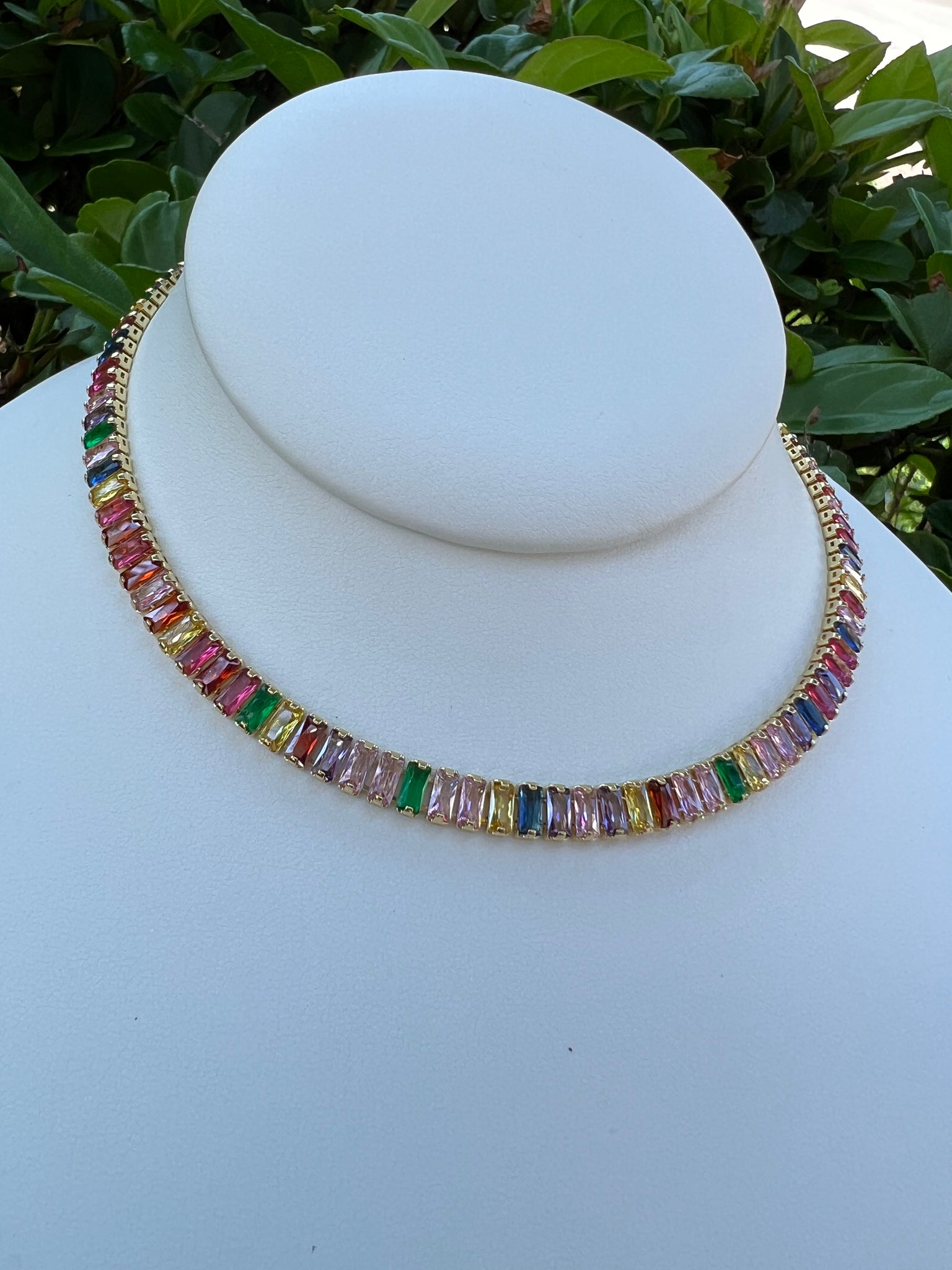 Gold plated colorful baguette zirconias choker 16 inches jewelry clasp