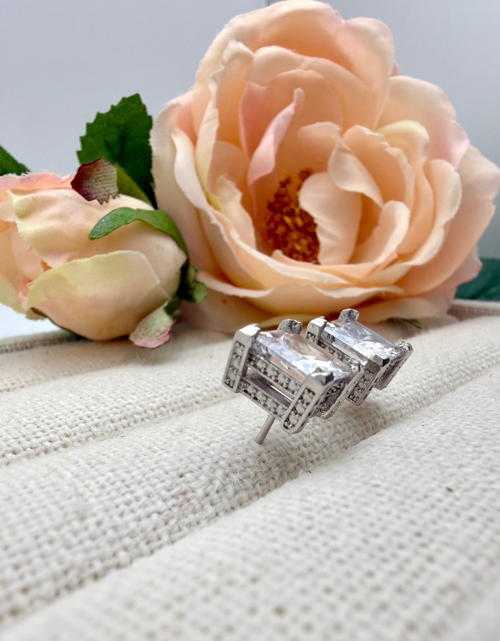 Crystal square cz 8 mm earrings