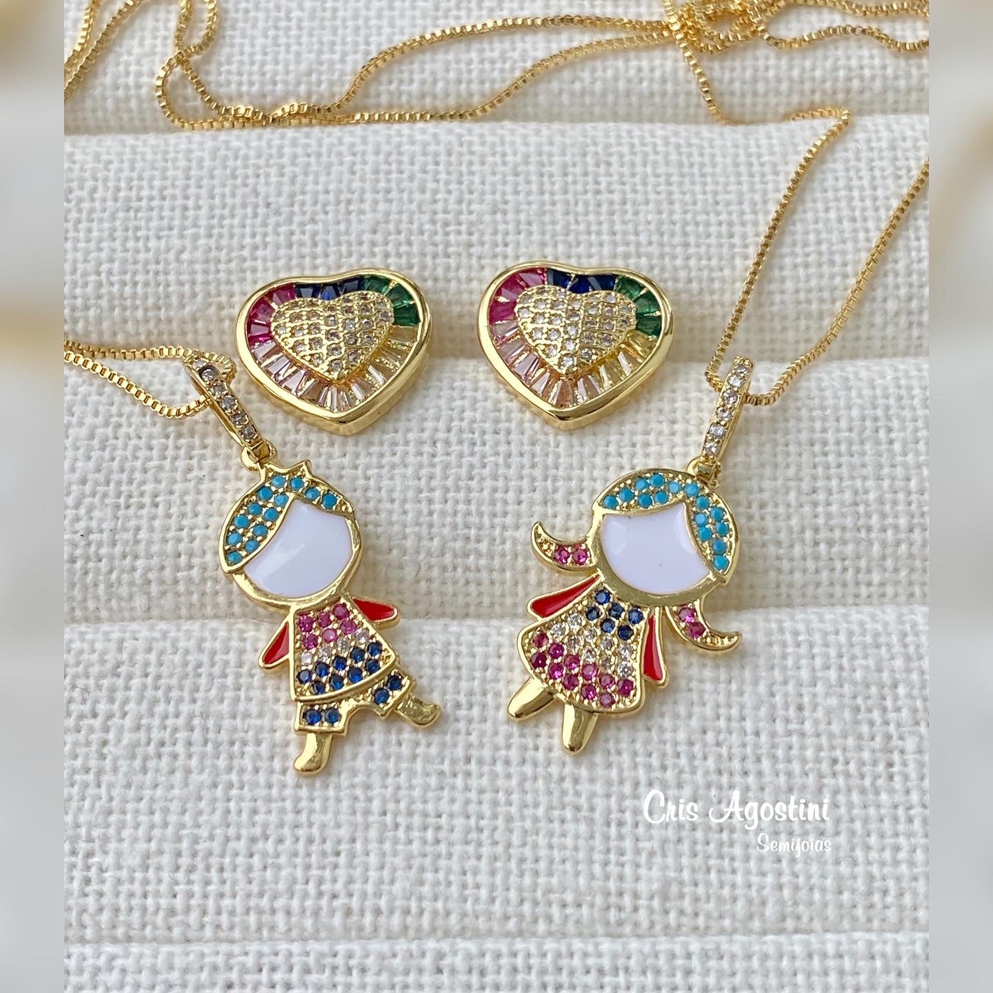 High quality gold plated enameled girl necklace 17,5 inches