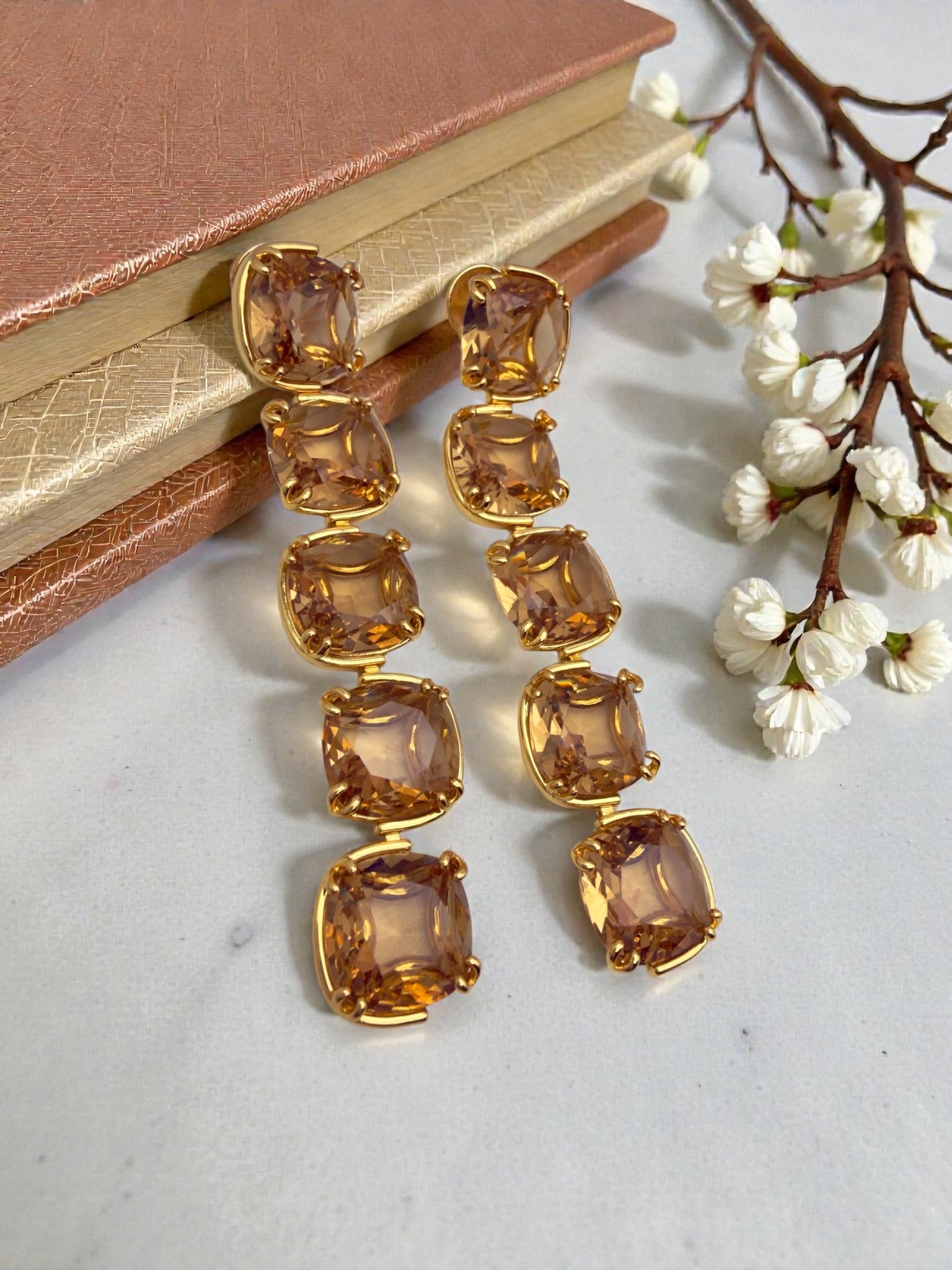 Faceted citrine long earrings