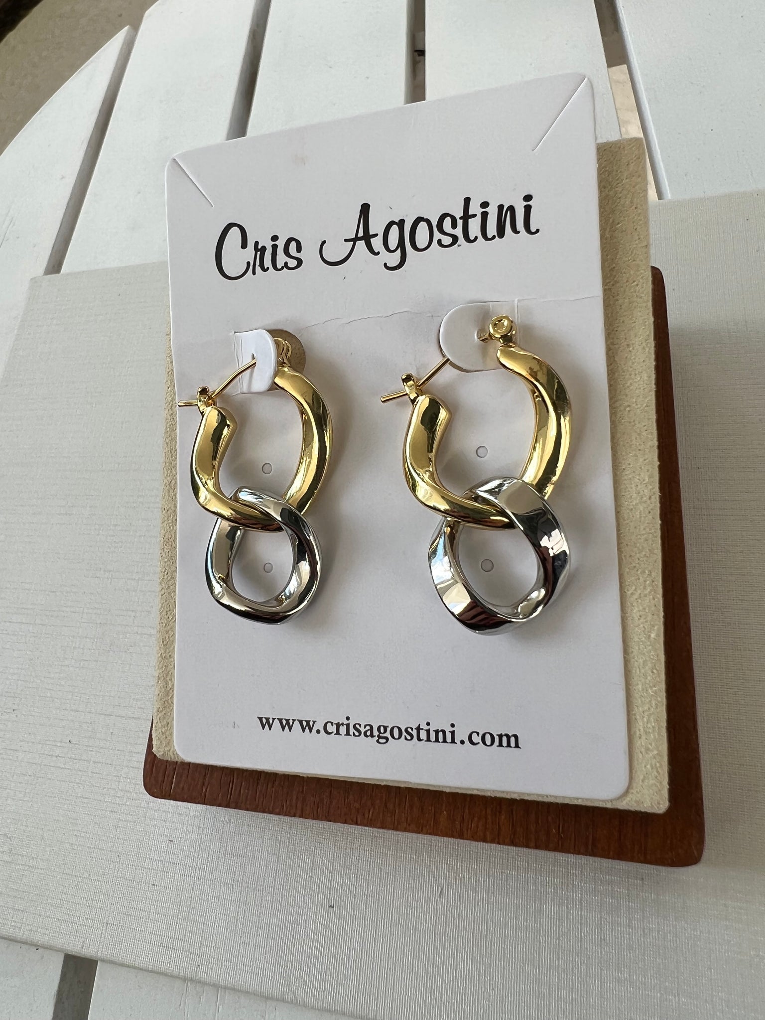 gold and silver links hoop earrings