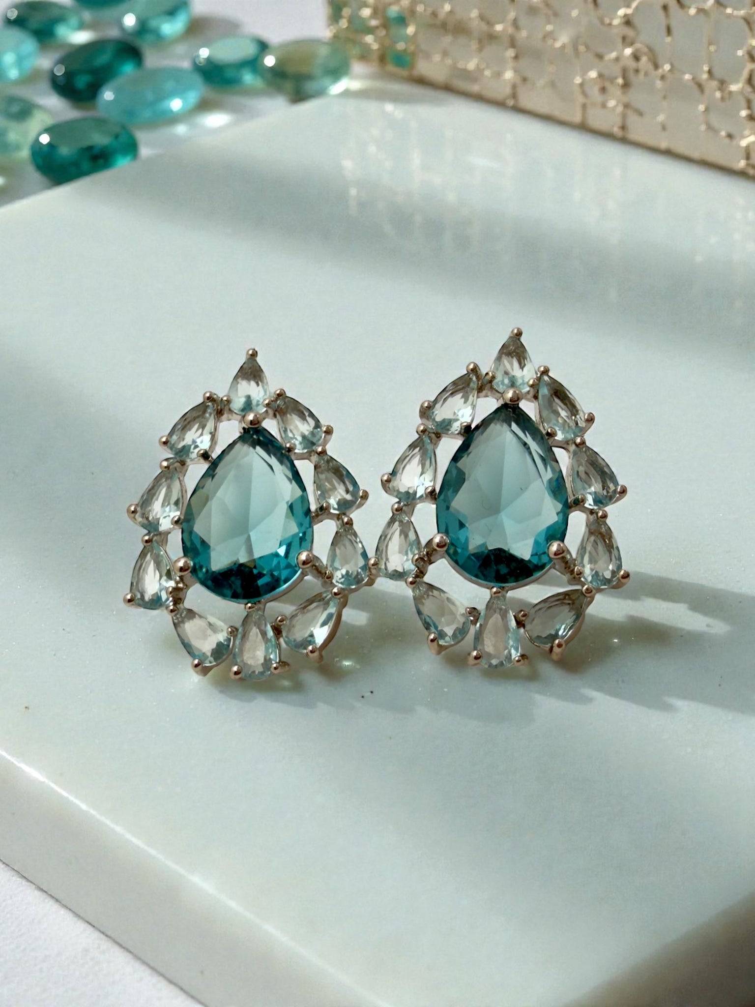 Large crystal teardrop earrings in two color shades Valentina Collection gold and silver plated