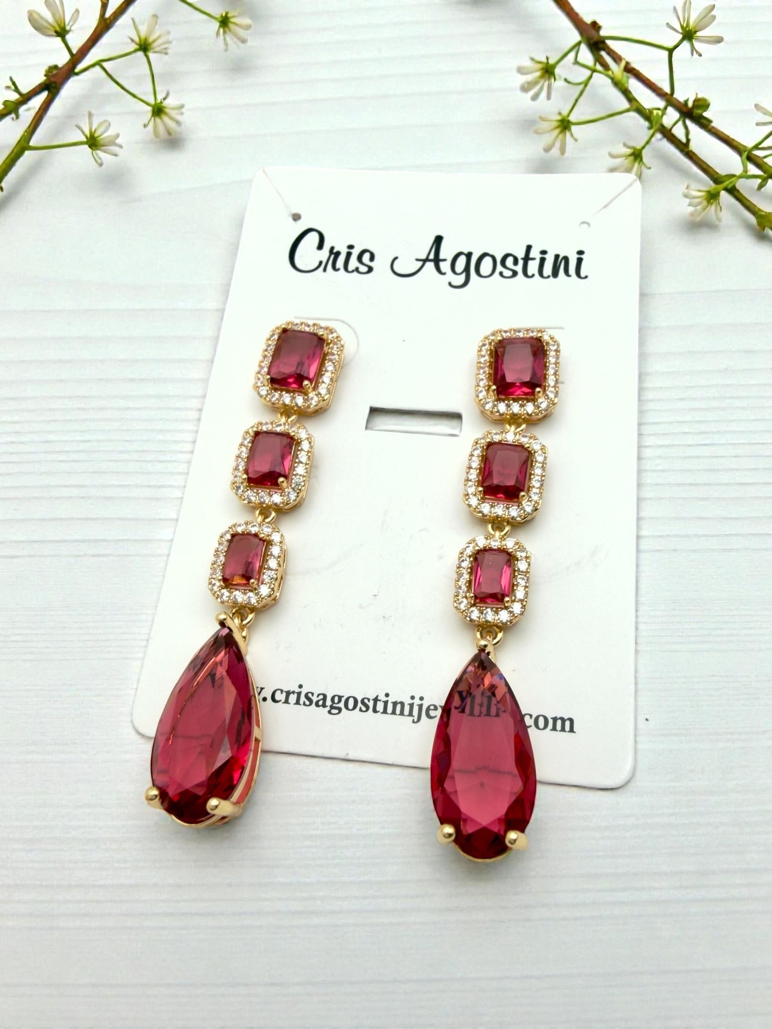 Long cz crystal drop Valentina Collection earrings gold and silver plated
