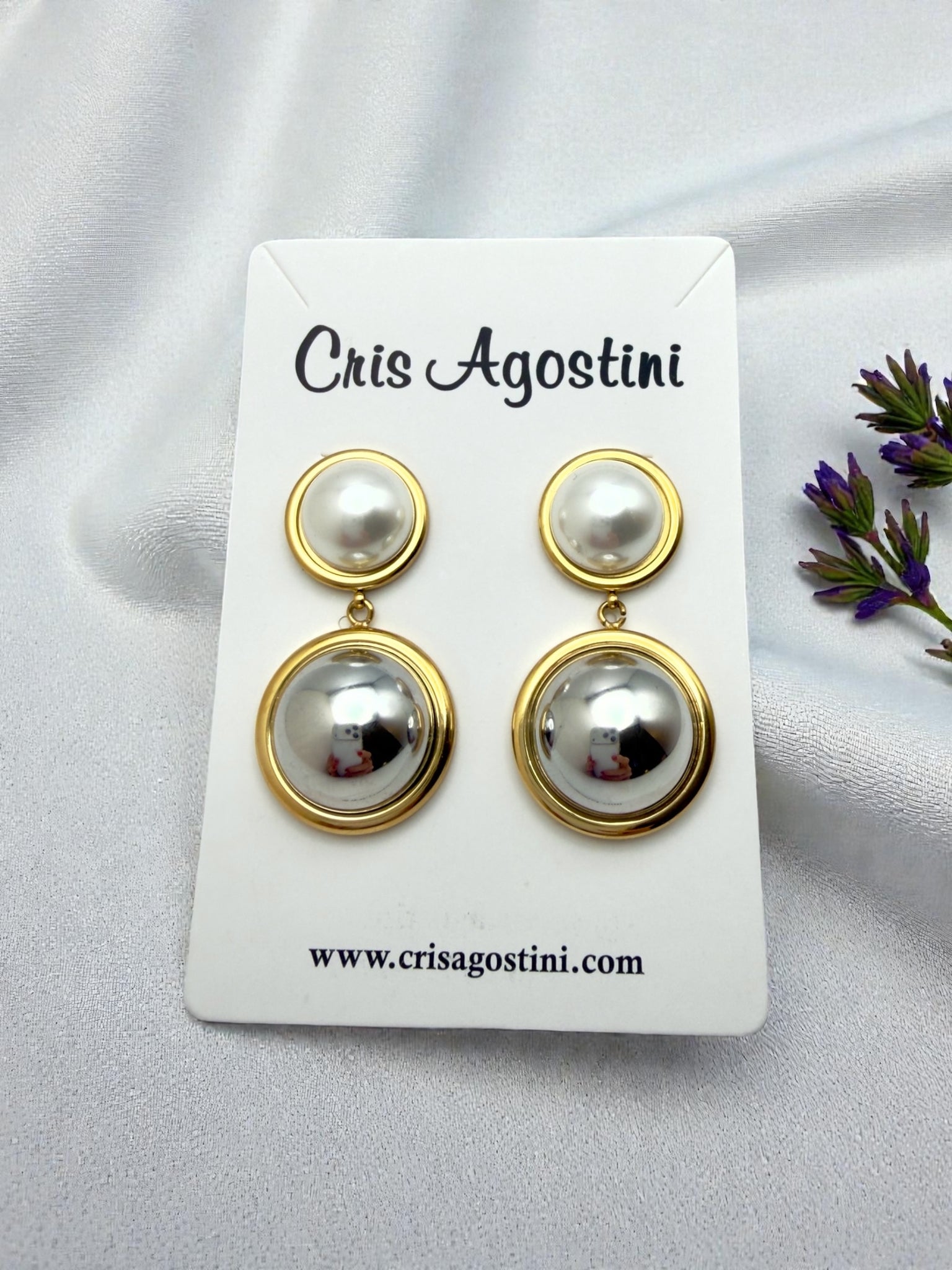 Pearl base half silver button earrings Seductive Collection gold and silver plated
