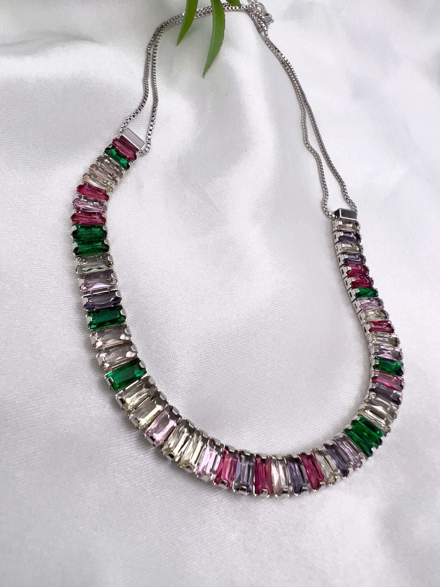 Riviera choker necklace, with double Chain, plated in 18k gold or white rhodium, studded with Crystal zirconia