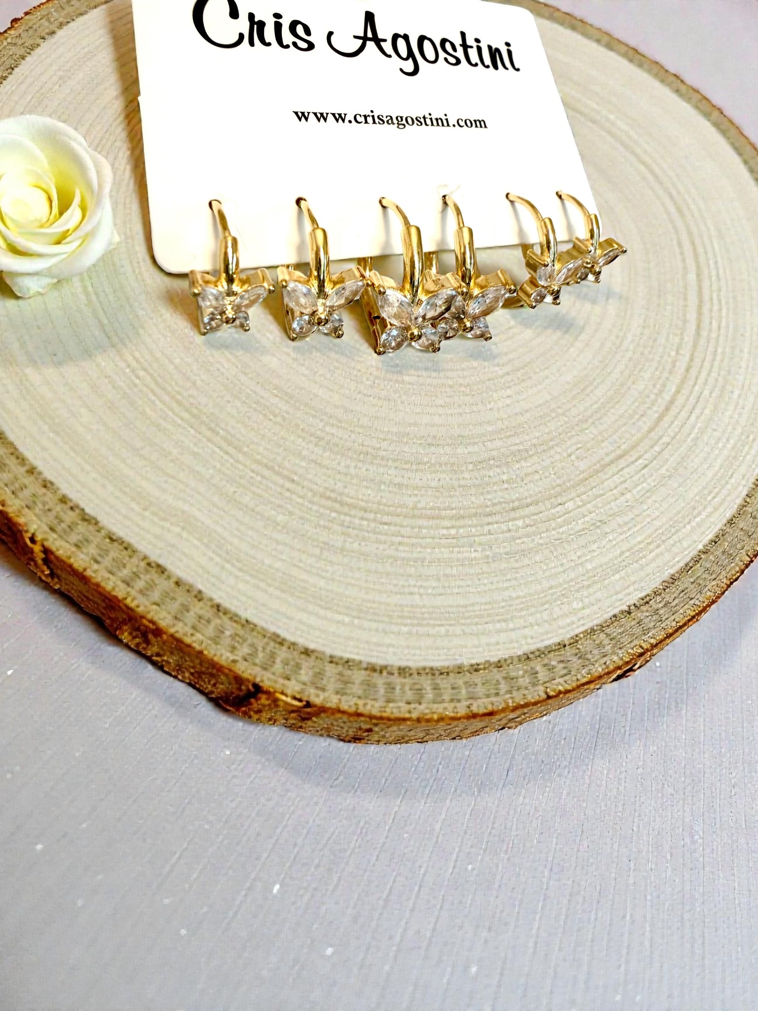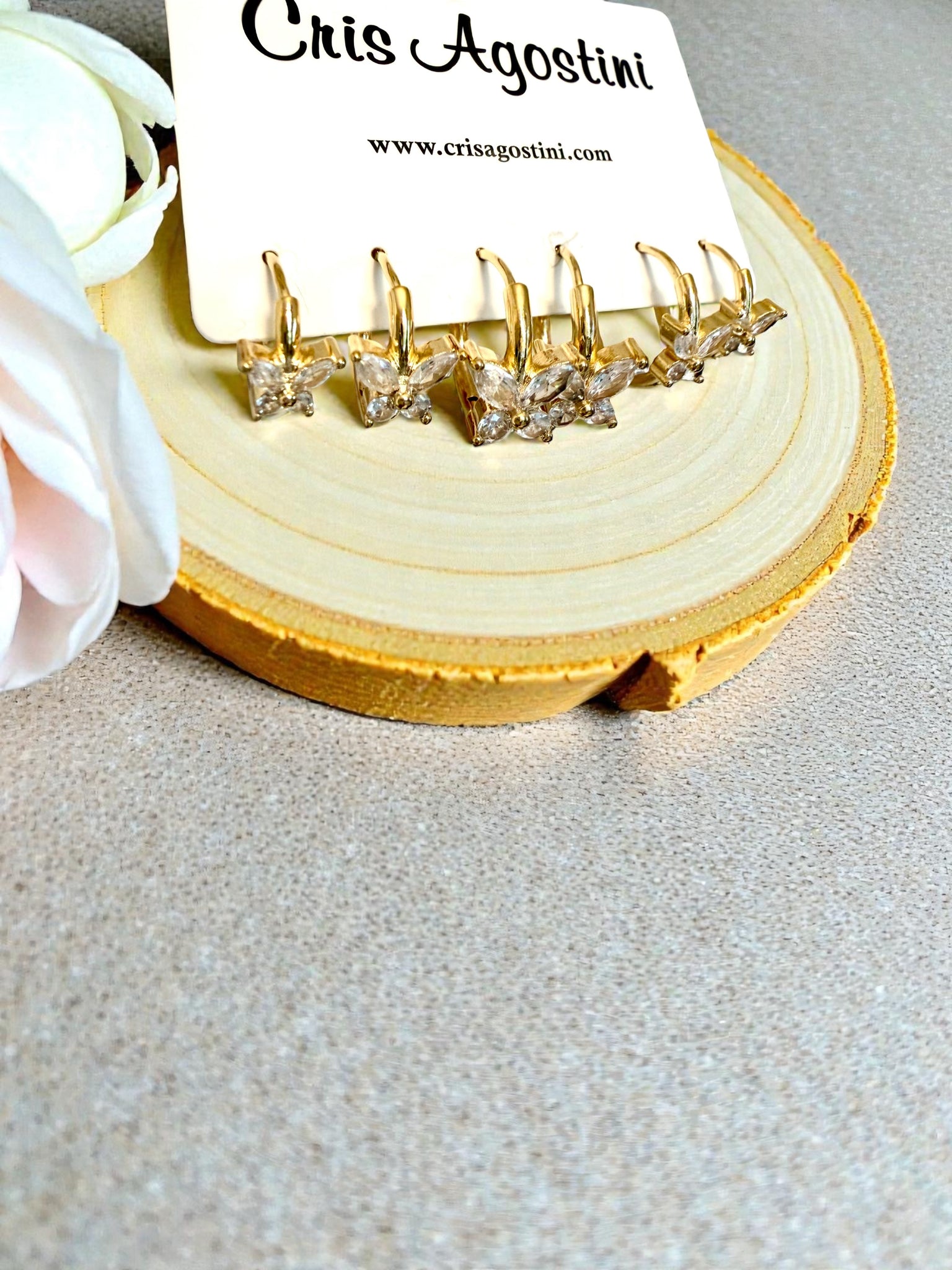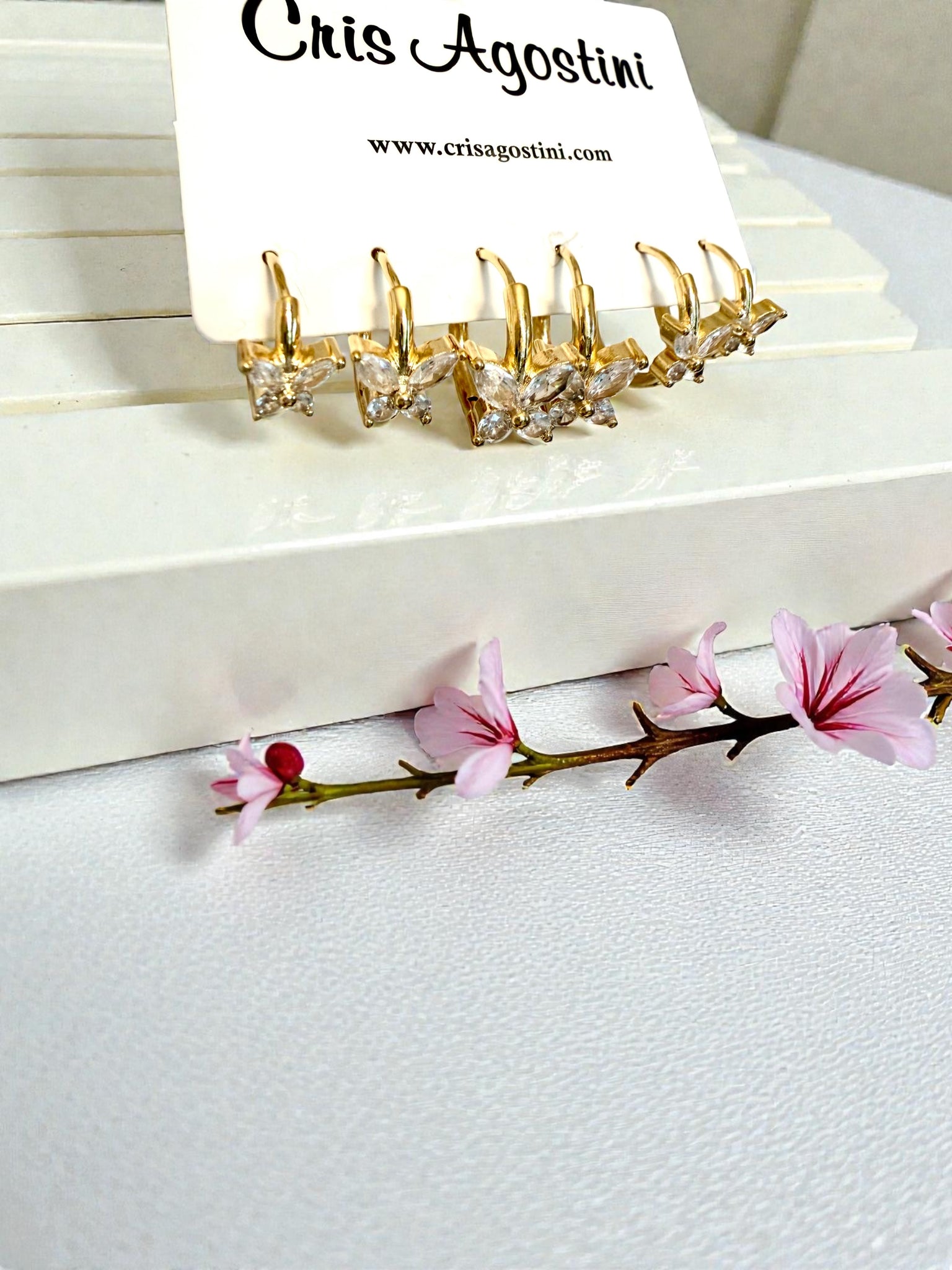 Set of 3 butterfly cz hoop earrings gold and silver plated