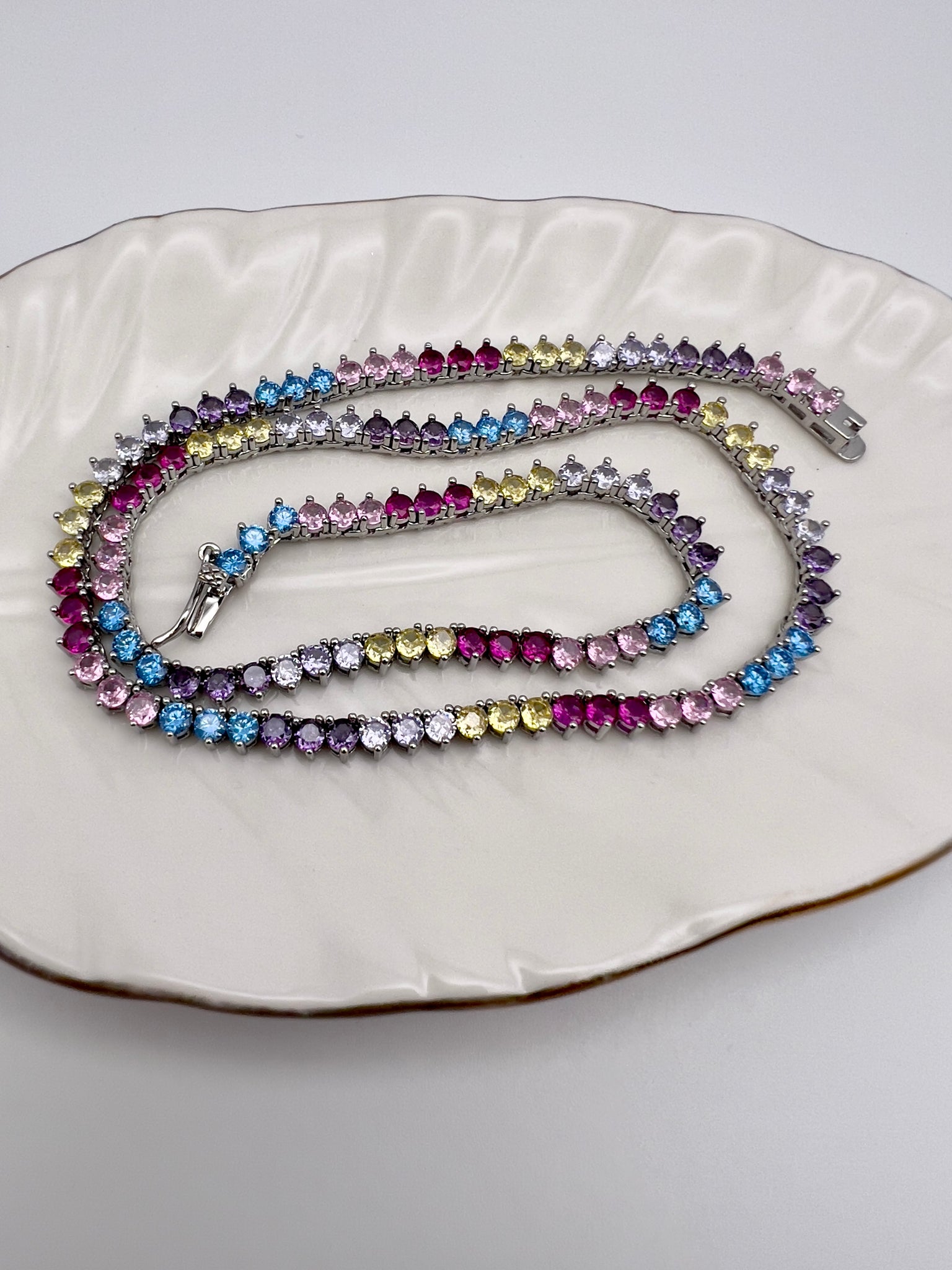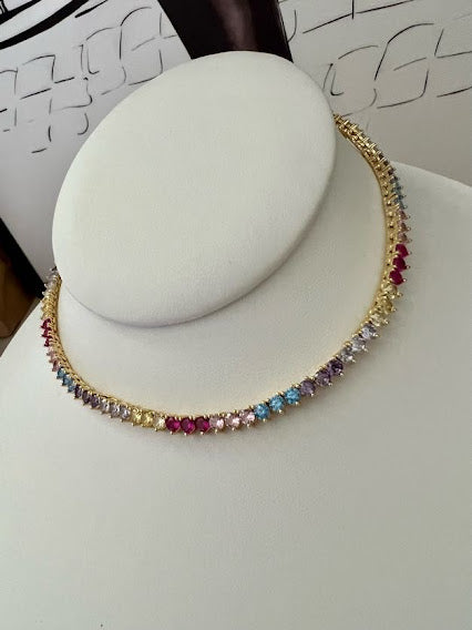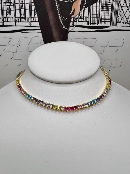 Small 3-point choker necklace colorful jewel clasp