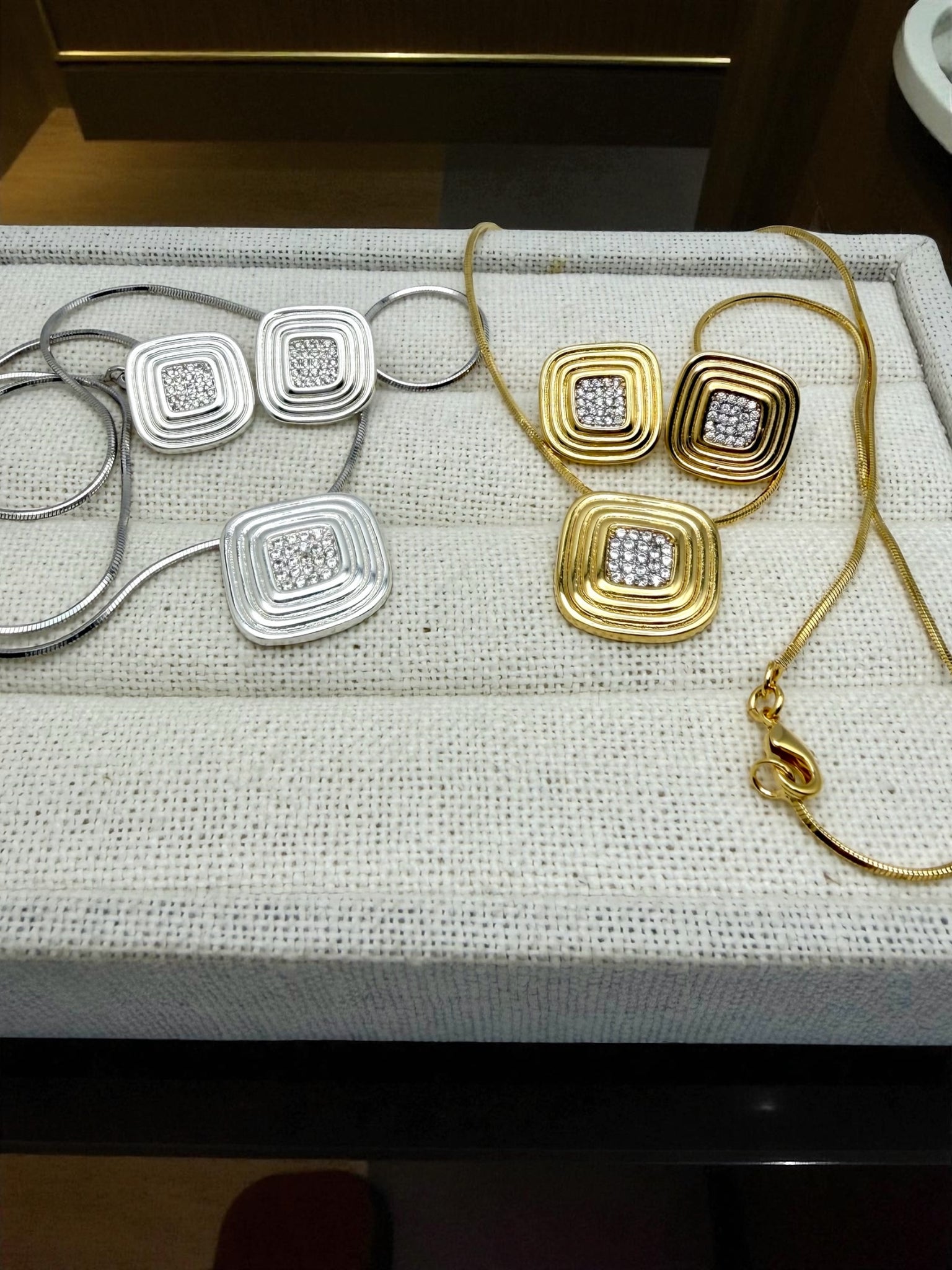 Square set with zirconia stones in the center gold and silver plated
