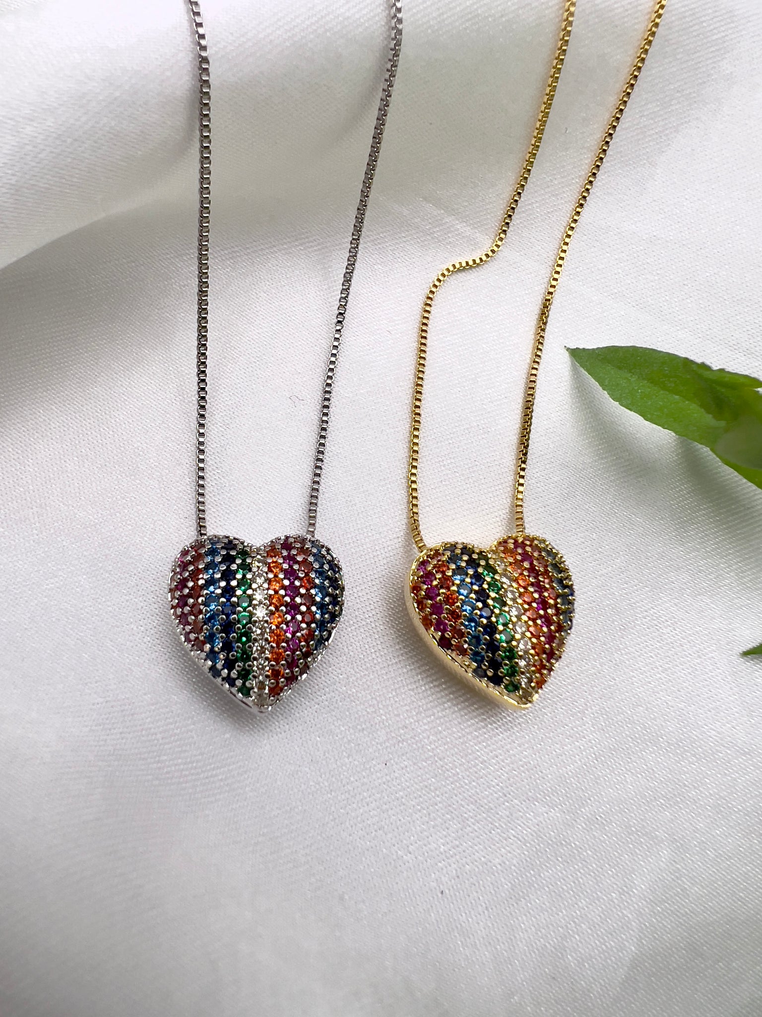Studded solitaire colorful cz necklace